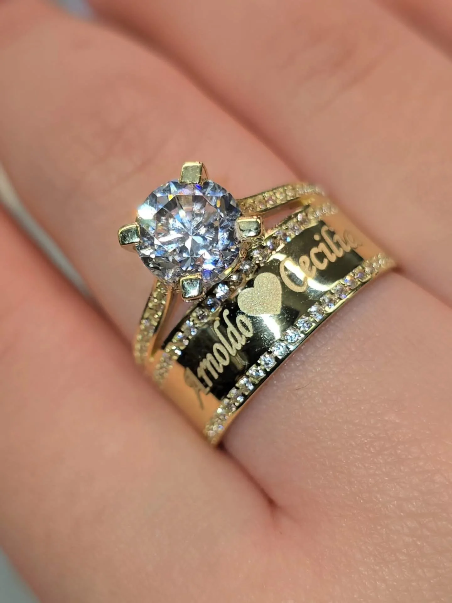 10K Gold Solitaire CZS Ring — Personalized Engraving Available