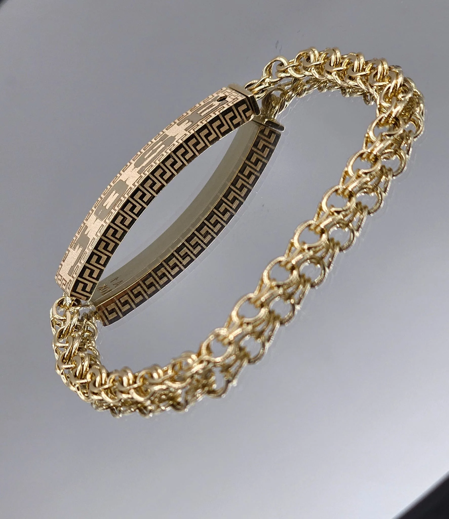 Introducing our exquisite 10 carat Chino link bracelet, a perfect addition to your jewelry collection. Crafted with precision, this bracelet weighs between 9.5 grams to 10 grams, ensuring a comfortable fit on your wrist. For a limited time, you can own this stunning bracelet , a special pricing offer exclusively available through our finance companies. To make it even more special, we offer custom edge of the box engraving, allowing you to personalize your bracelet and make it truly unique. Additionally, you can choose to have custom engraving in front of the box, adding a personal touch to the packaging. Made from solid 10 carat gold, this bracelet is not only a symbol of elegance but also a timeless piece that will last a lifetime. Don't miss out on this incredible offer and upgrade your jewelry collection today! Please note: This offer is also available as part of our back-to-school promotion, making it the perfect gift for yourself or a loved one heading back to school.