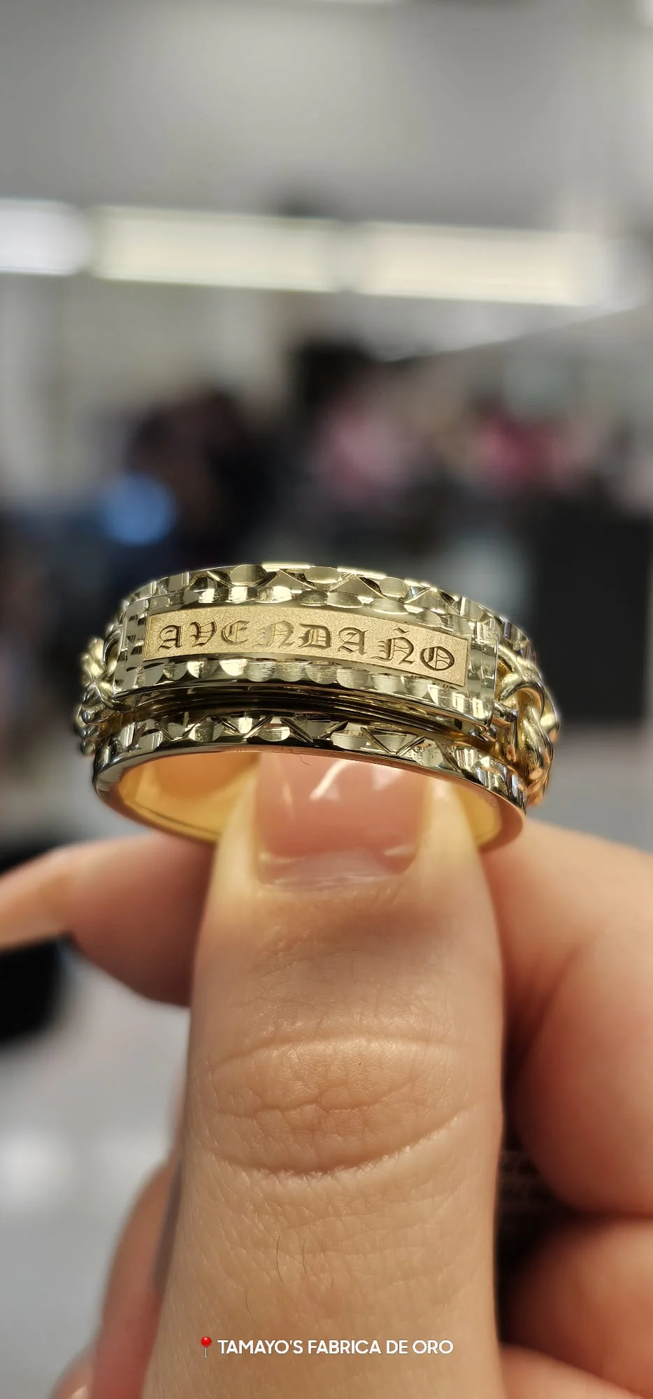 Enhance your jewelry collection with this one-of-a-kind spinning ring that seamlessly blends style and sentiment.