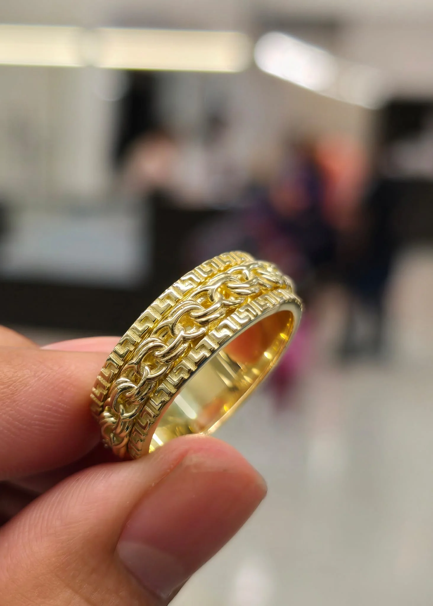 Introducing the 10k Chino Monaco Spinning Ring – where minimalism meets timeless elegance. Crafted from premium 10-karat gold and approximately 6 grams, this slim and lightweight ring is designed for both comfort and style, making it perfect for everyday wear. With its smooth spinning feature and unisex appeal, it’s the ultimate versatile accessory for any occasion. Embrace effortless sophistication with a ring that combines simplicity and function in one sleek design.